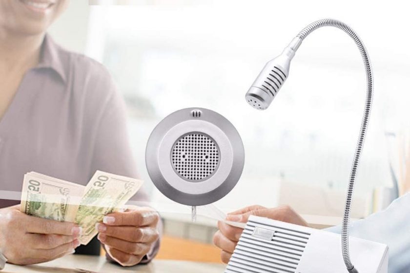 Intercomunicador de ventana para servicio al cliente y seguridad.